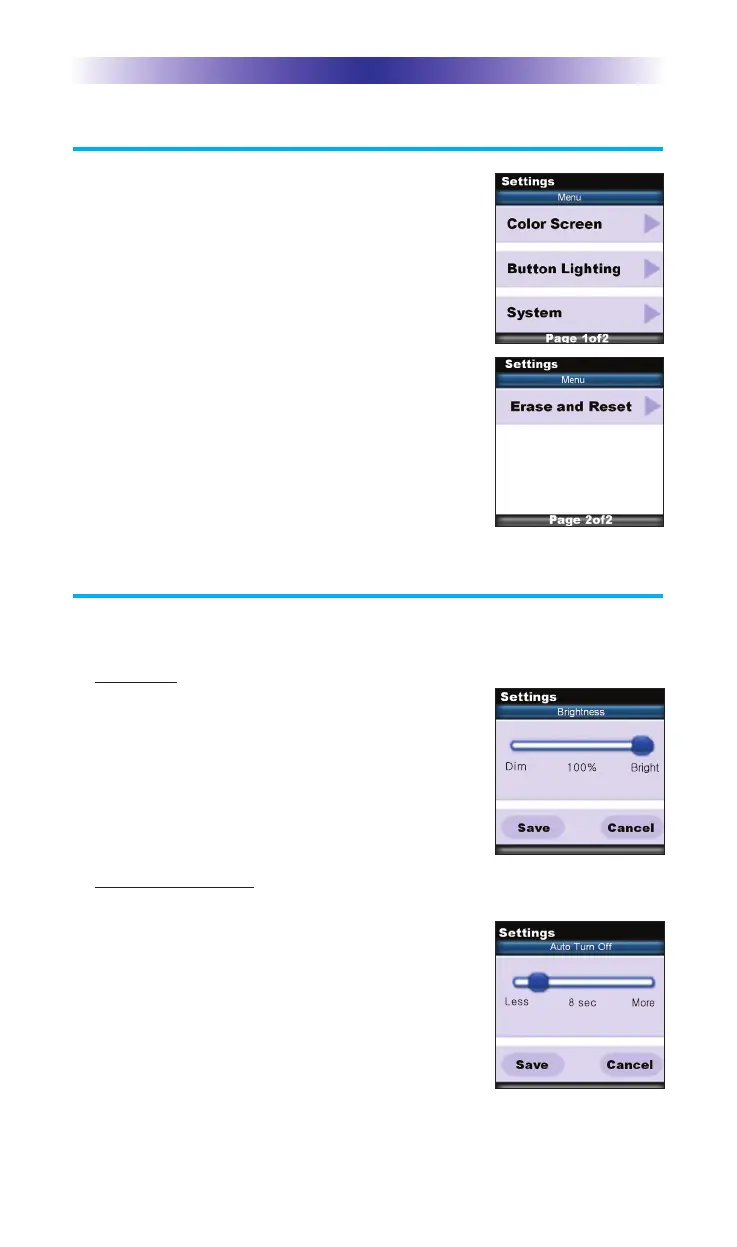 Note: Increasing the Auto Turn off time will delete the batteries faster.