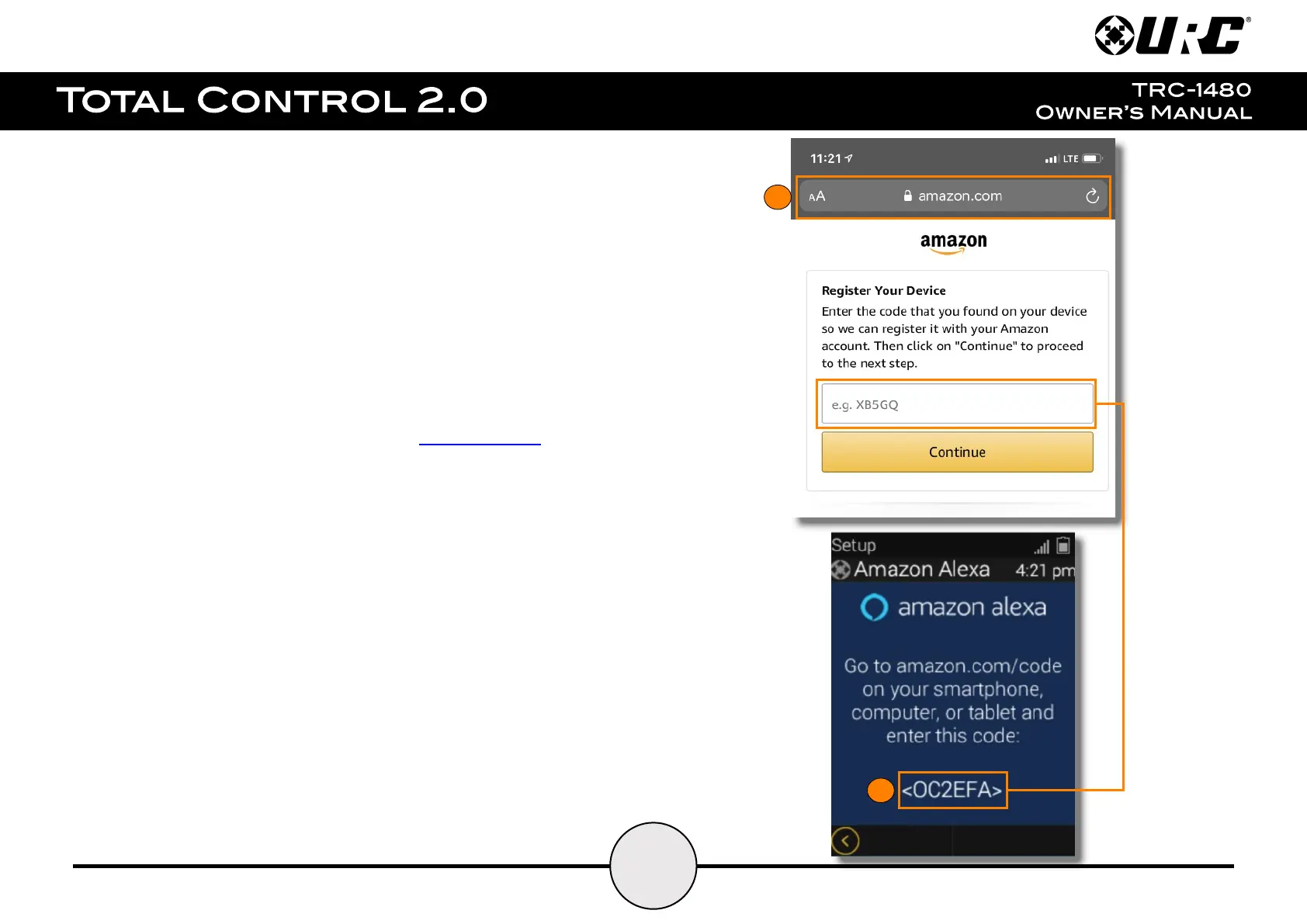 5. Enter the code displayed on the TRC-1480.