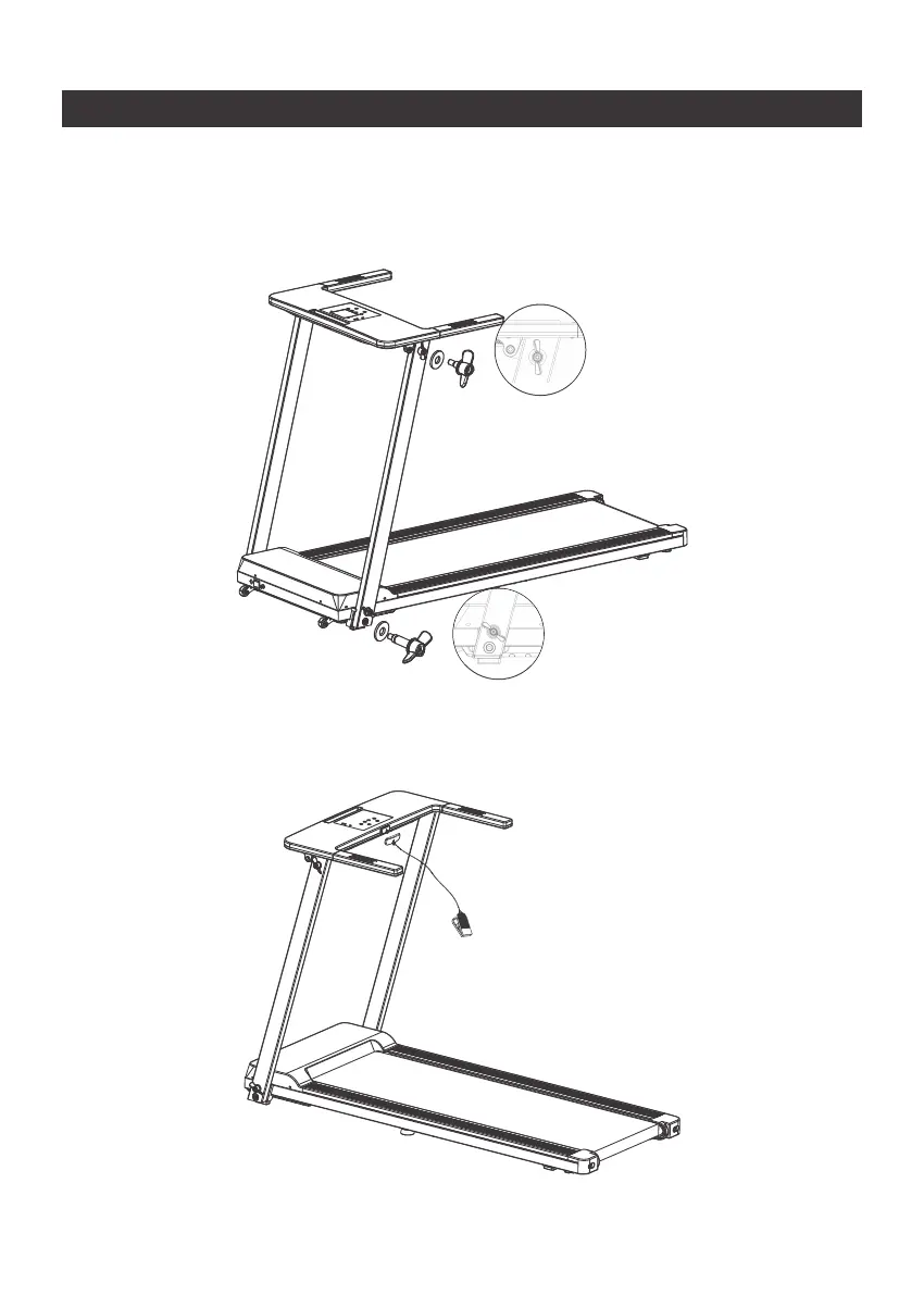 of the treadmill and tighten the knobs well. Similarly, use knob C with gasket F to fix