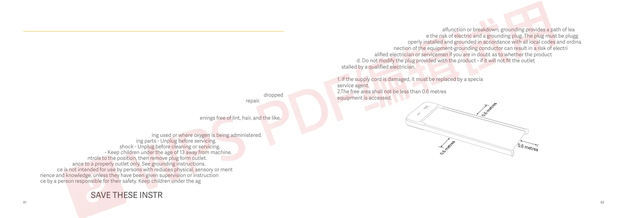 resistance for electric current to reduce the risk of electric and a grounding plug. The plug must be plugged into