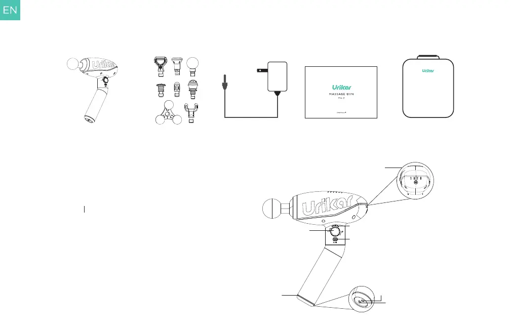 Power Charge x1Massage Heads x8 User Manual x1 Handbag x1
