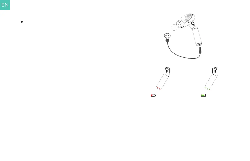 A. Low Battery Display: Battery <20%, red light is on.