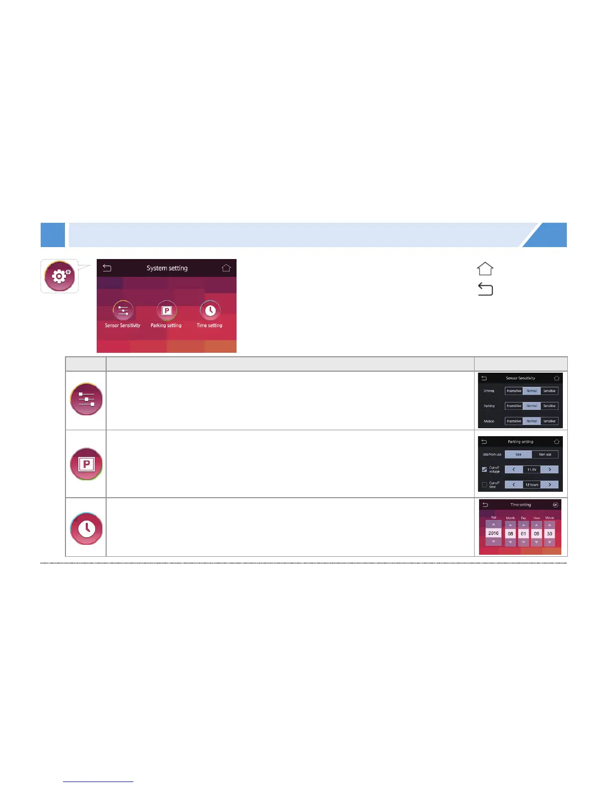 conditions of turning the black box off in the parking mode. Set to "Non Use" in