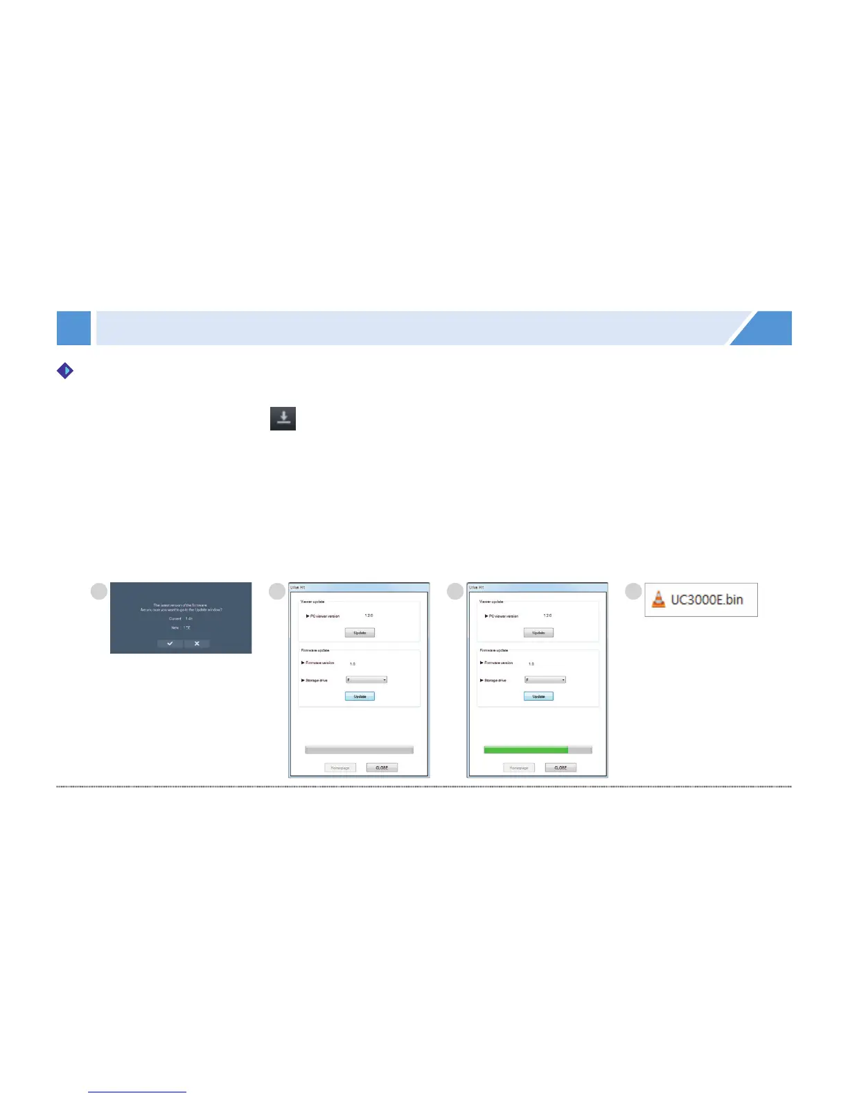 When the update is finished, a prompt pops up as in ④ and the update file (UC3000E.bin) is copied to the