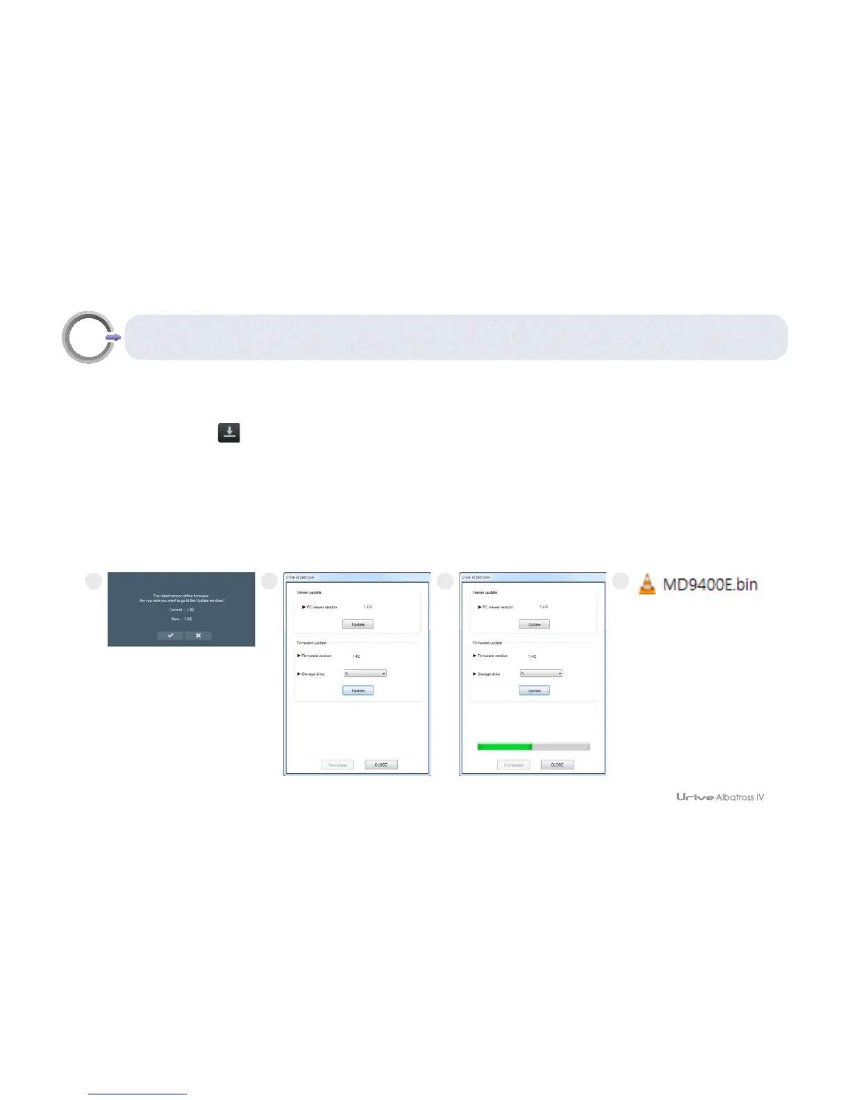 PC, and then press button at the upper left of main screen of Viewer. (If a micro SD card having firmware version