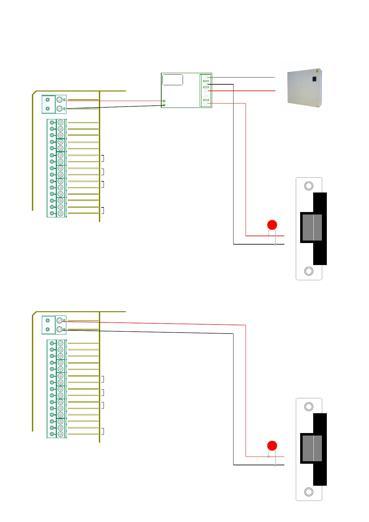 Typical connections for fail secure (fail locked) electric release -