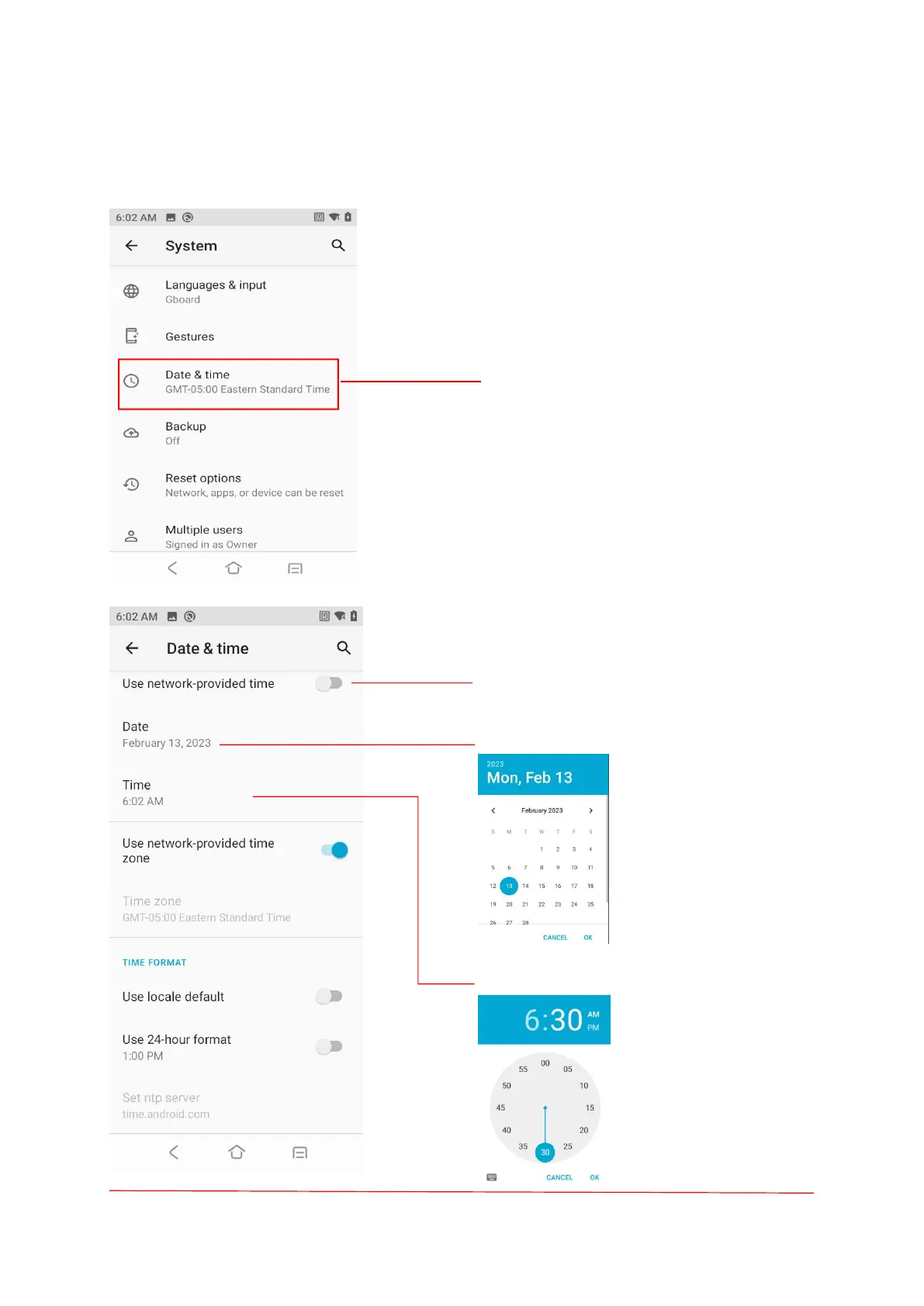 Touch " Settings-System-Data & time".