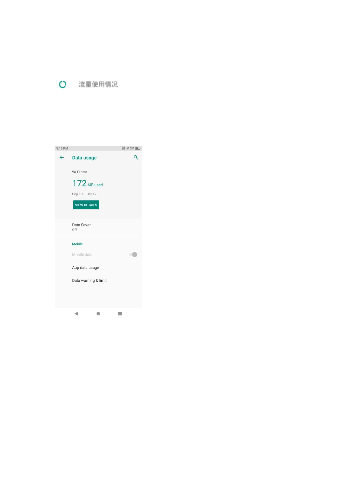 触摸可打开流量使用情况页面,可开启或关闭流量开关,开启设置移动数据流量开关,
