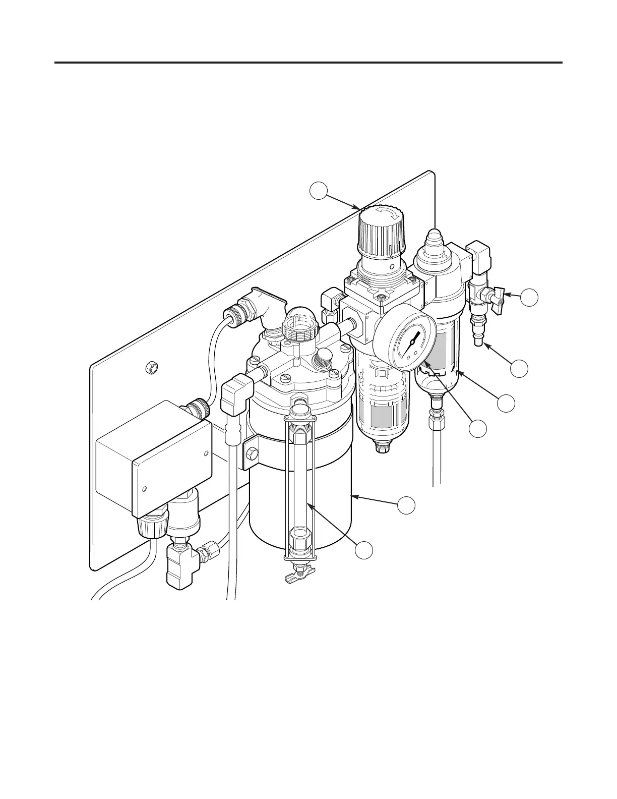 Coalescing Filter, (5) Pressure Gauge, (6) Oil Mist Lubricator, (7) Oil Level Sight Gauge