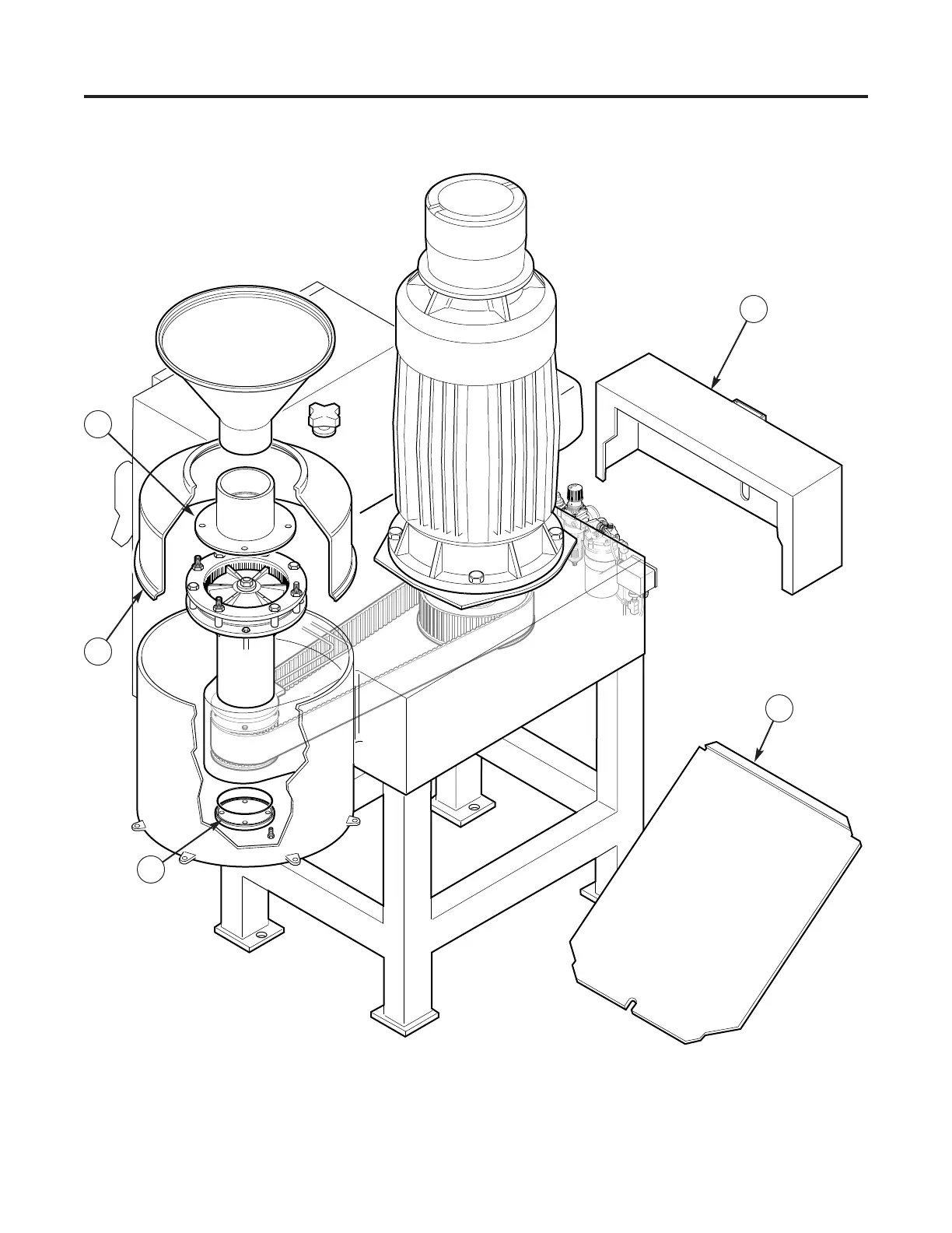 Figure 28 — Covers and guards. (1) Feed Adapter, (2) Upper Enclosure, (3) Lubricator Cover, (4) Belt Cover,