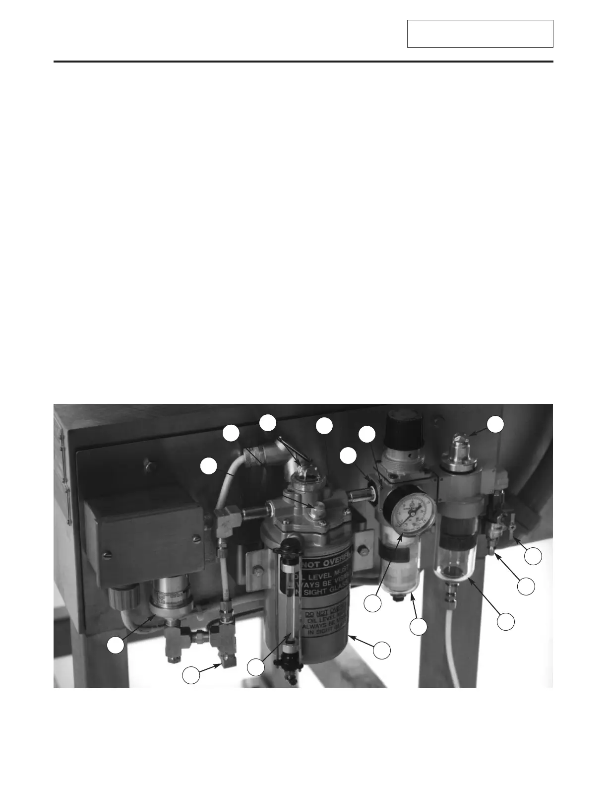 Figure 29 — Oil mist lubricator assembly. (1) Oil Mist Lubricator, (2) Sight Dome — Oil Mist Lubricator, (3) Oil Feed