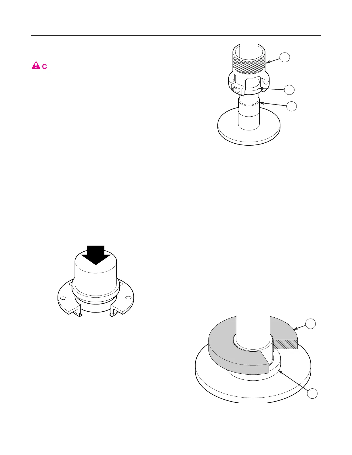 ing ring on impeller shaft. (1) Starting Sleeve, (2) Clamp,