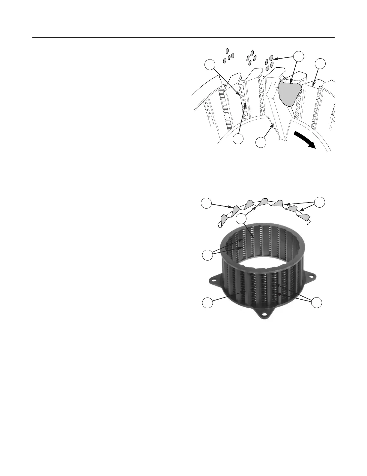 arators, (2) Vertical Knives, (3) Impeller, (4) Product, (5)