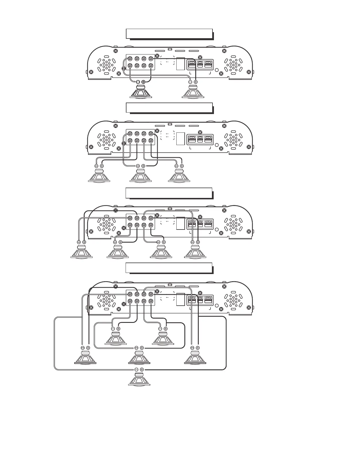 SCHEMA DI COLLEGAMENTO DEGLI ALTOPARLANTI PER L’IMPIANTO A QUATTTRO CANA