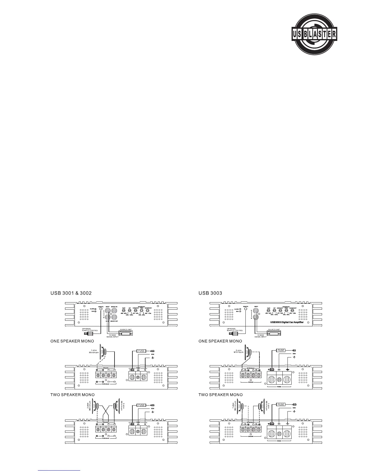 • Bij overbrugging van twee versterkers ga dan volgens het bedradingschema voor de overbrugging te werk.
