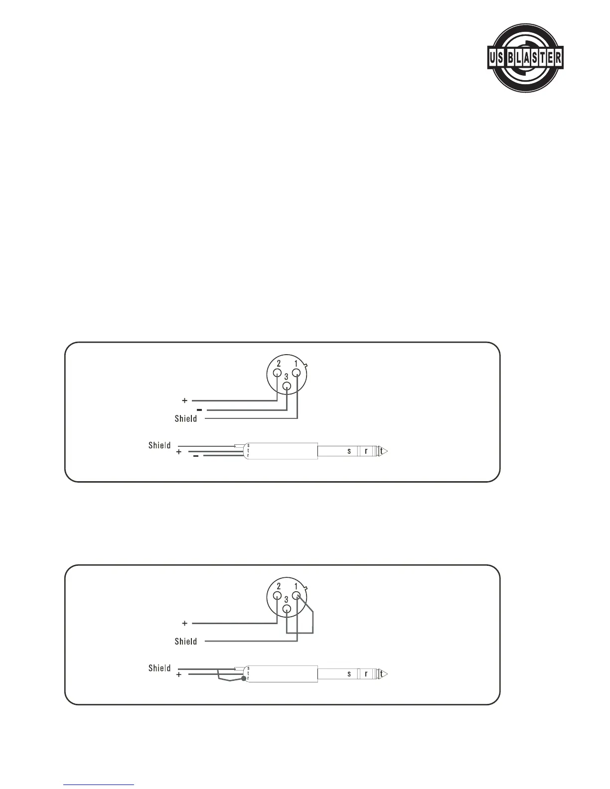 2 of the XLR or the phone jack TIP, with the cable screen going to pins 1 and 3 of the XLRs or the
