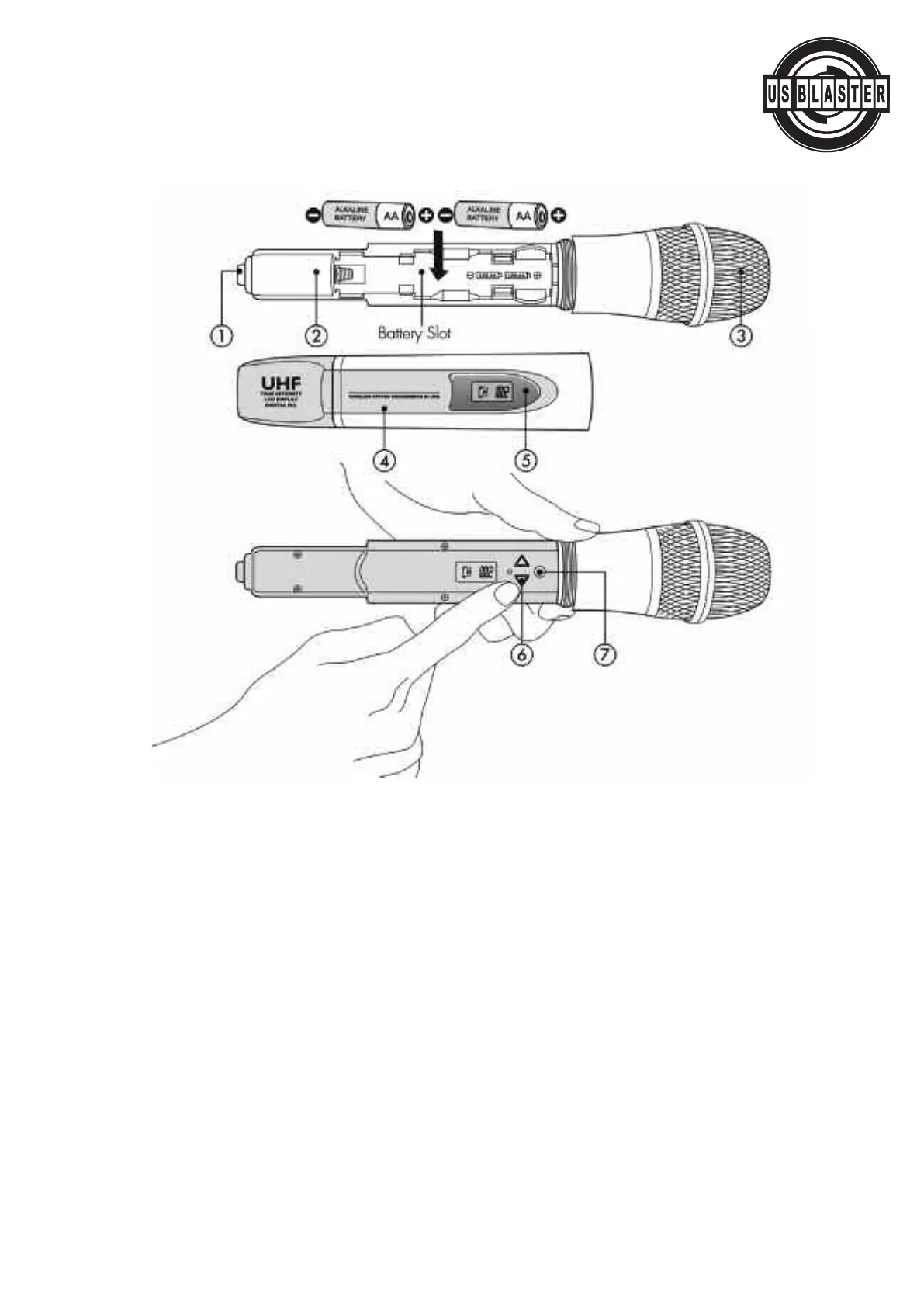 4. Battery Cover: Insert 2 AA batteries into the battery slot, putting battery's polarity on different ends