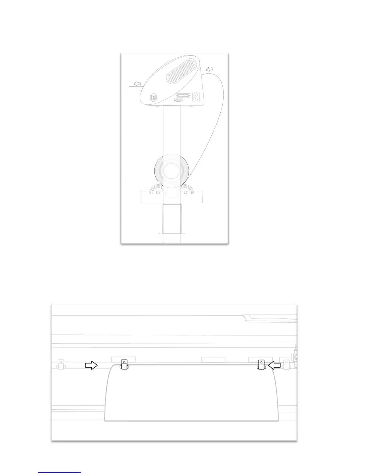 Feed the media through the back of the machine, underneath the pinch rollers (if working from a single sheet