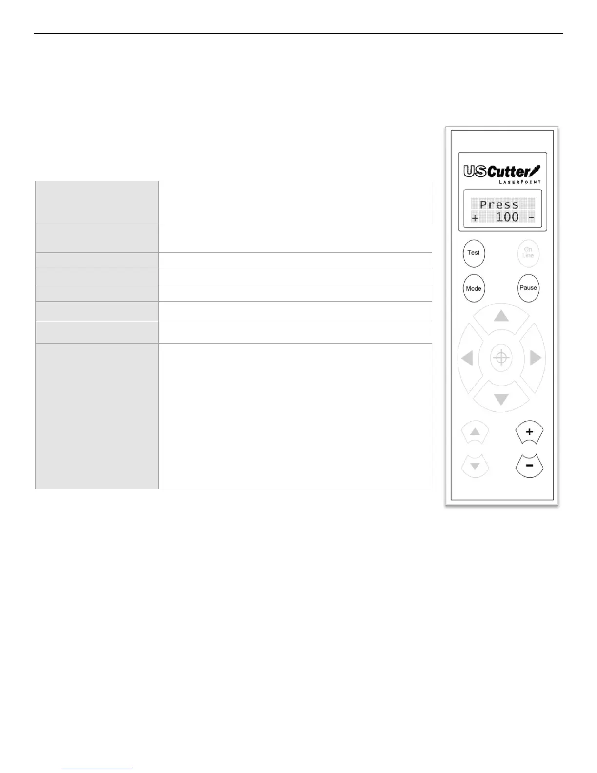 Returns the cutter to Jog Mode (If held down, a test cut