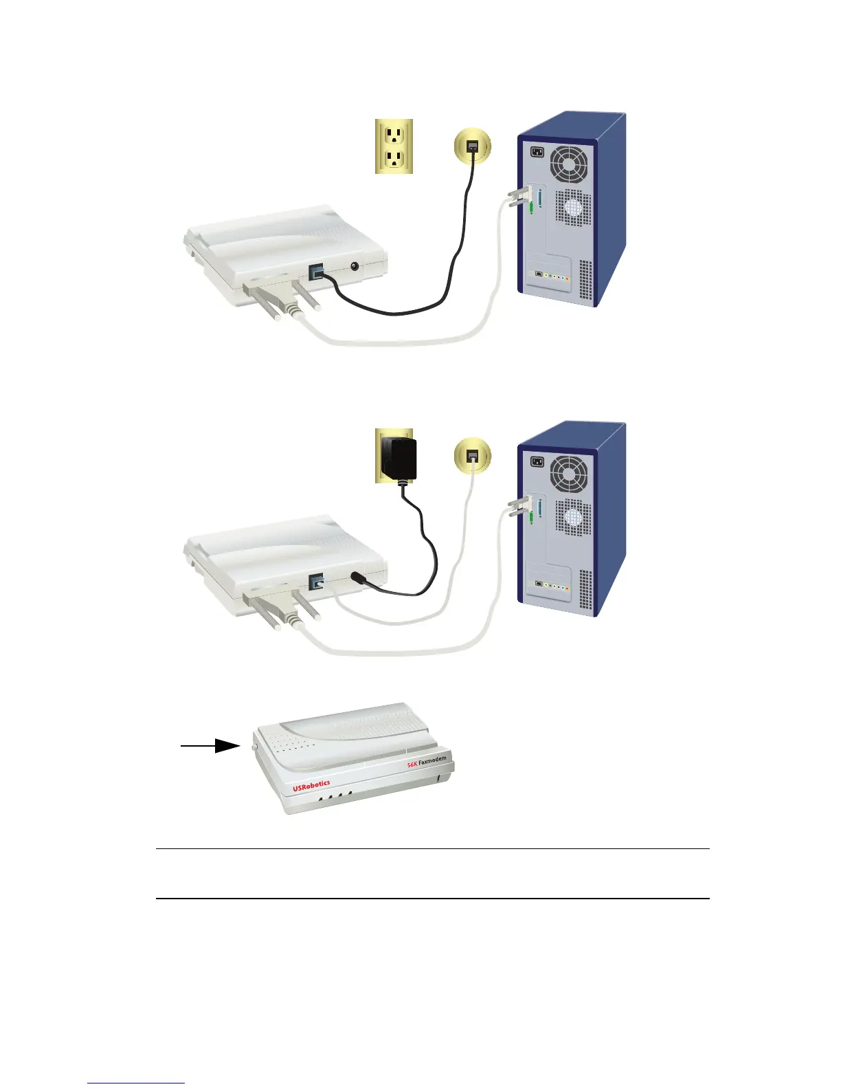 Not: Güç LED'i yanmıyorsa, modem açık olmayabilir. Güç kaynağının hem