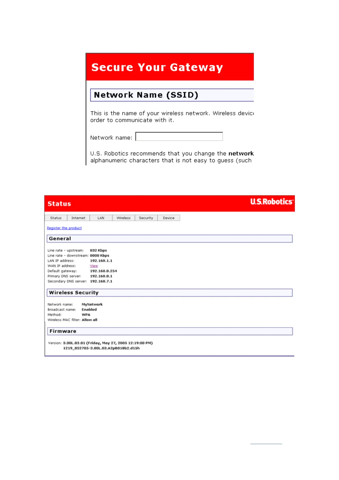 setting up security on your wireless network. U.S. Robotics strongly recommends that you