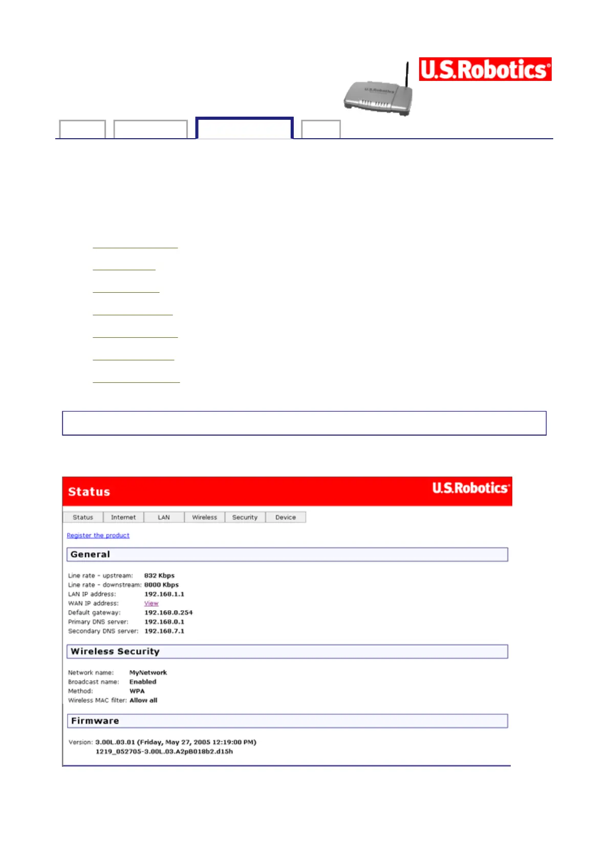Login Status Internet LAN Wireless Security Device Appendix