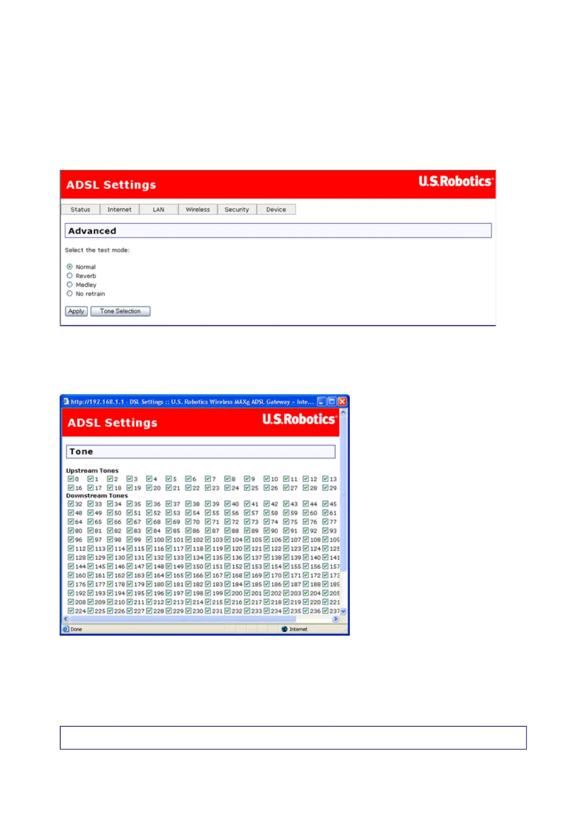 Advanced ADSL Settings (ADSL Testing)