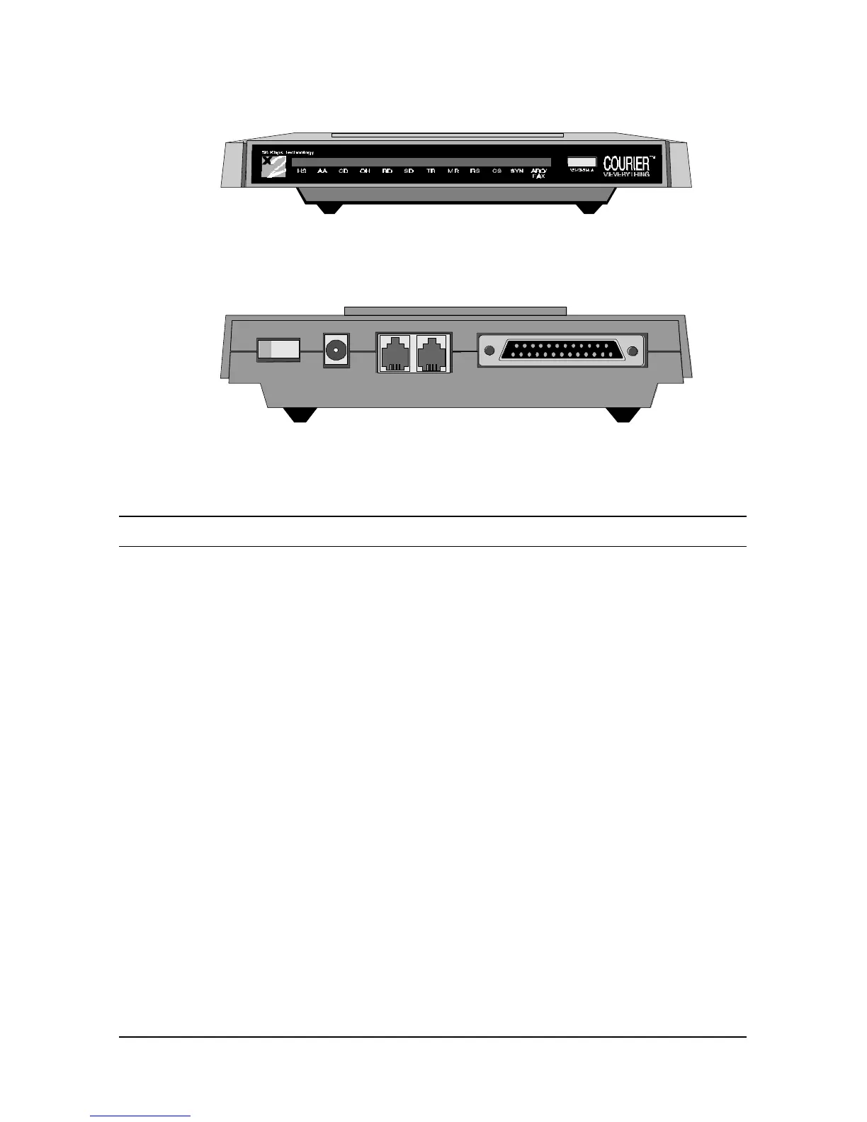 Figure 3.2 The Courier V.Everything Modem (Front)