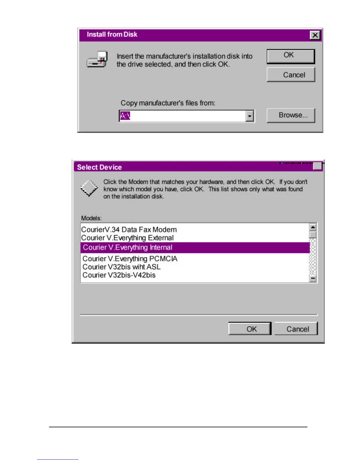 4 Select the Courier V.Everything Internal or Courier V.Everything