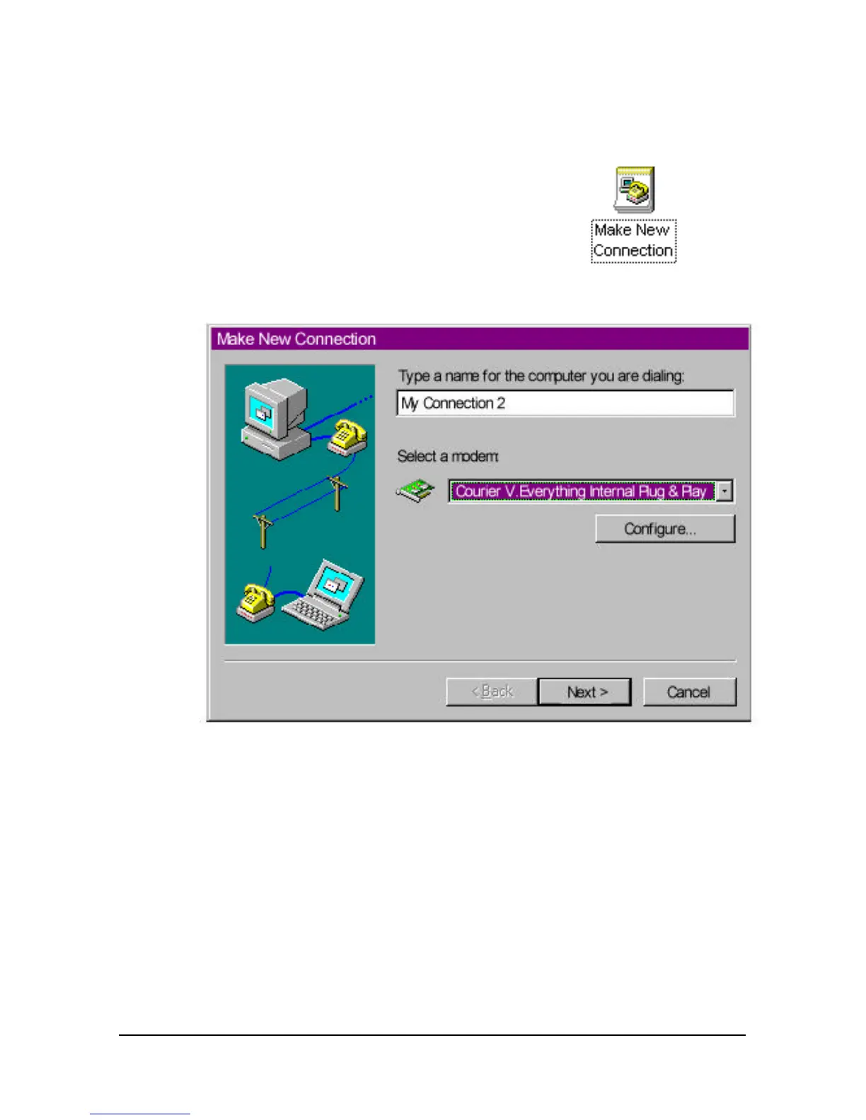 2 Double-click Make New Connection.