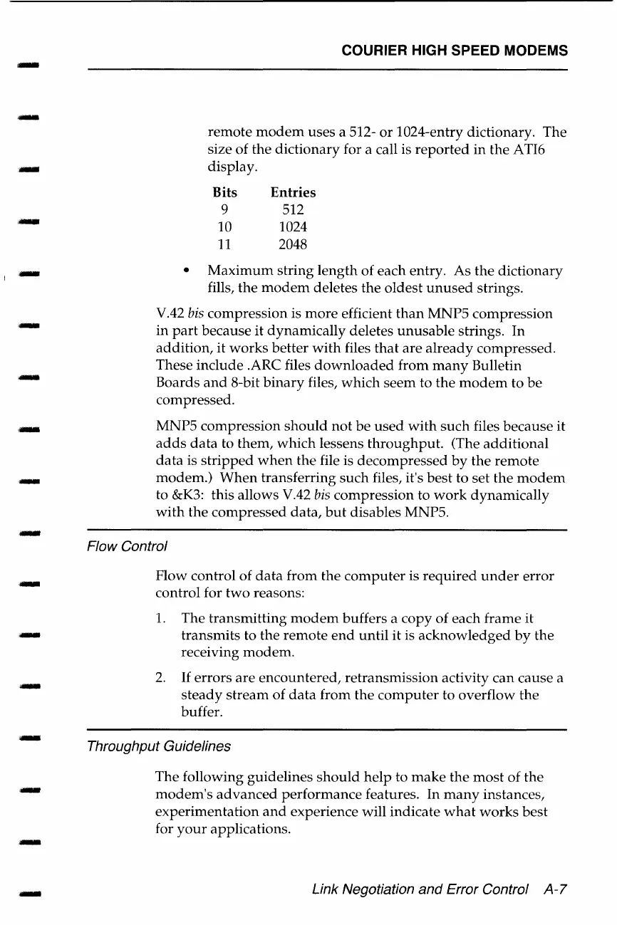 US Robotics COURIER - Flow Control; Throughput Guidelines