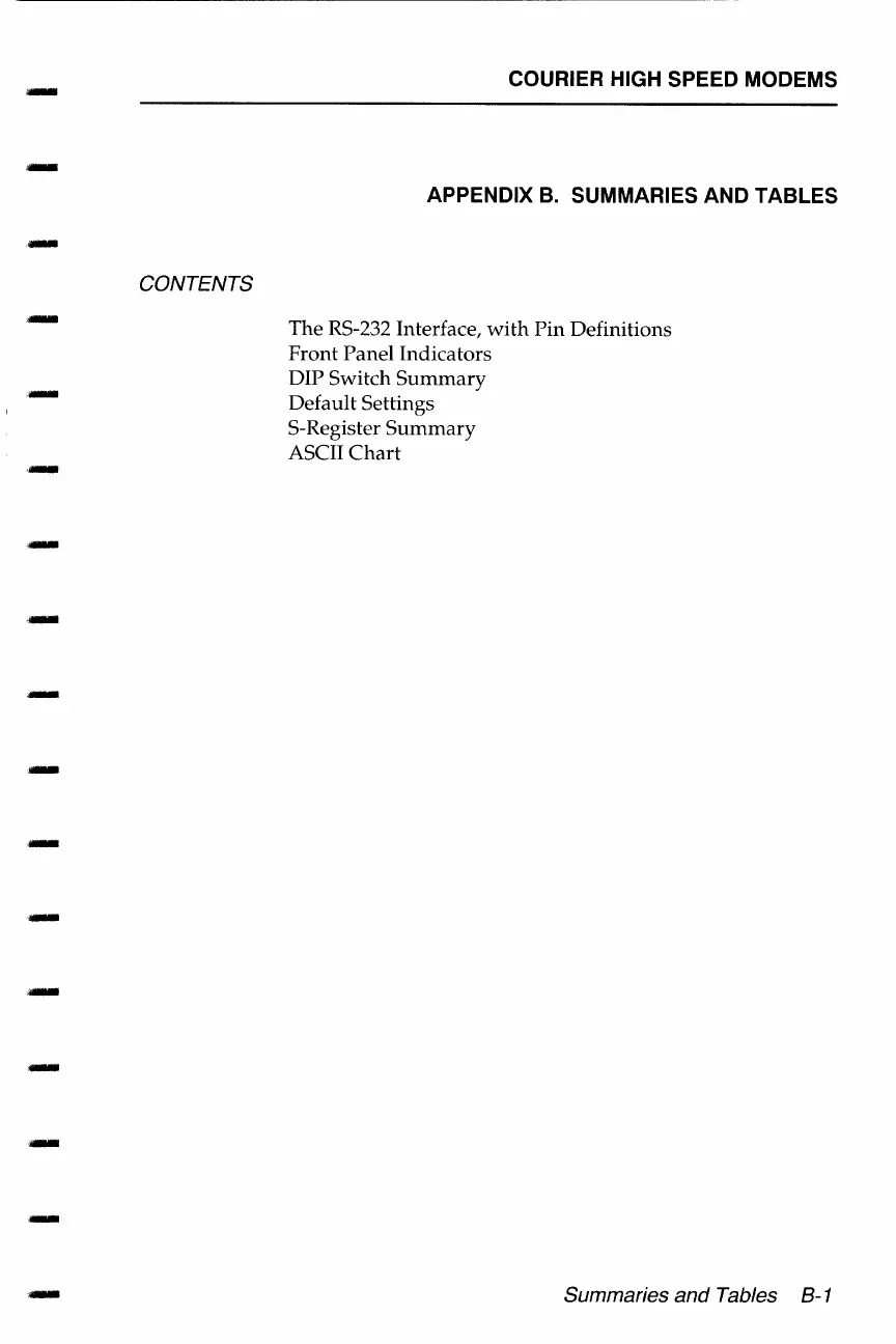 US Robotics COURIER - APPENDIX B. SUMMARIES AND TABLES