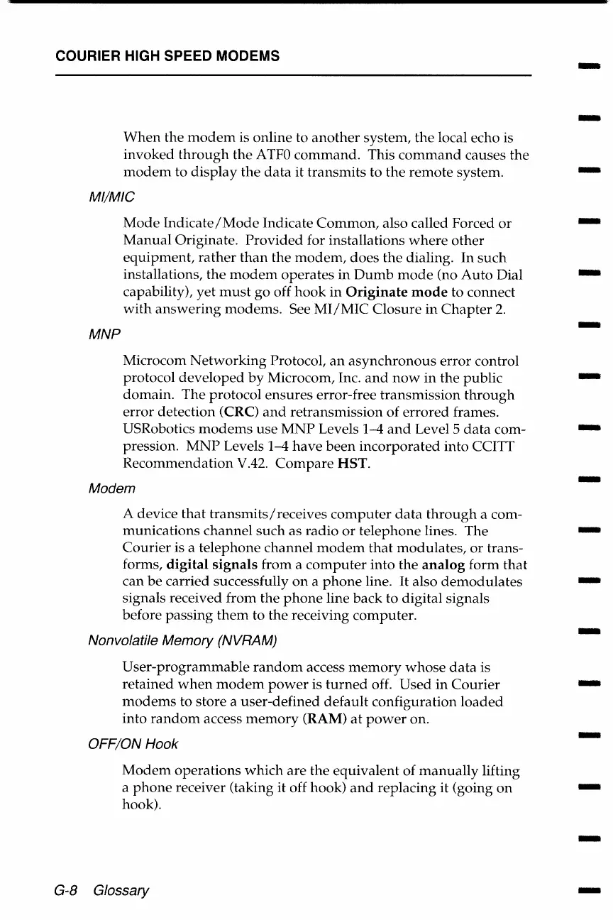 US Robotics COURIER - MNP (Microcom Networking Protocol); Nonvolatile Memory (NVRAM)
