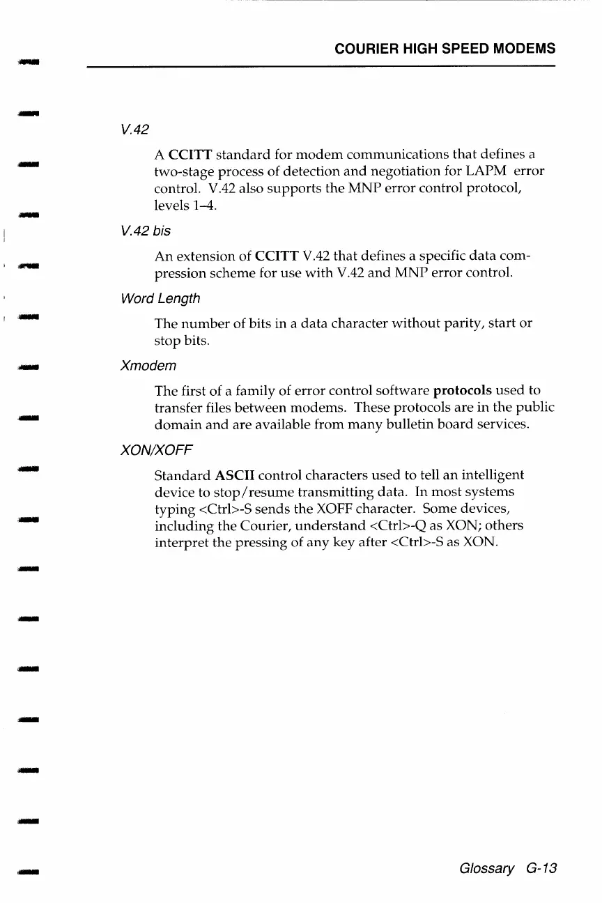 US Robotics COURIER - V.42 Standard; V.42 bis Data Compression