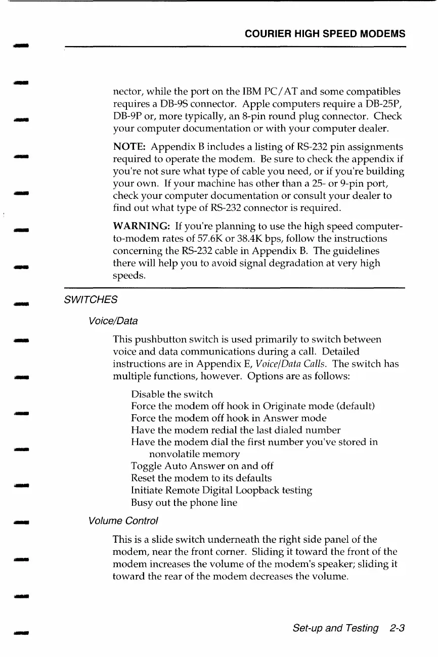 US Robotics COURIER - Modem Switch Settings