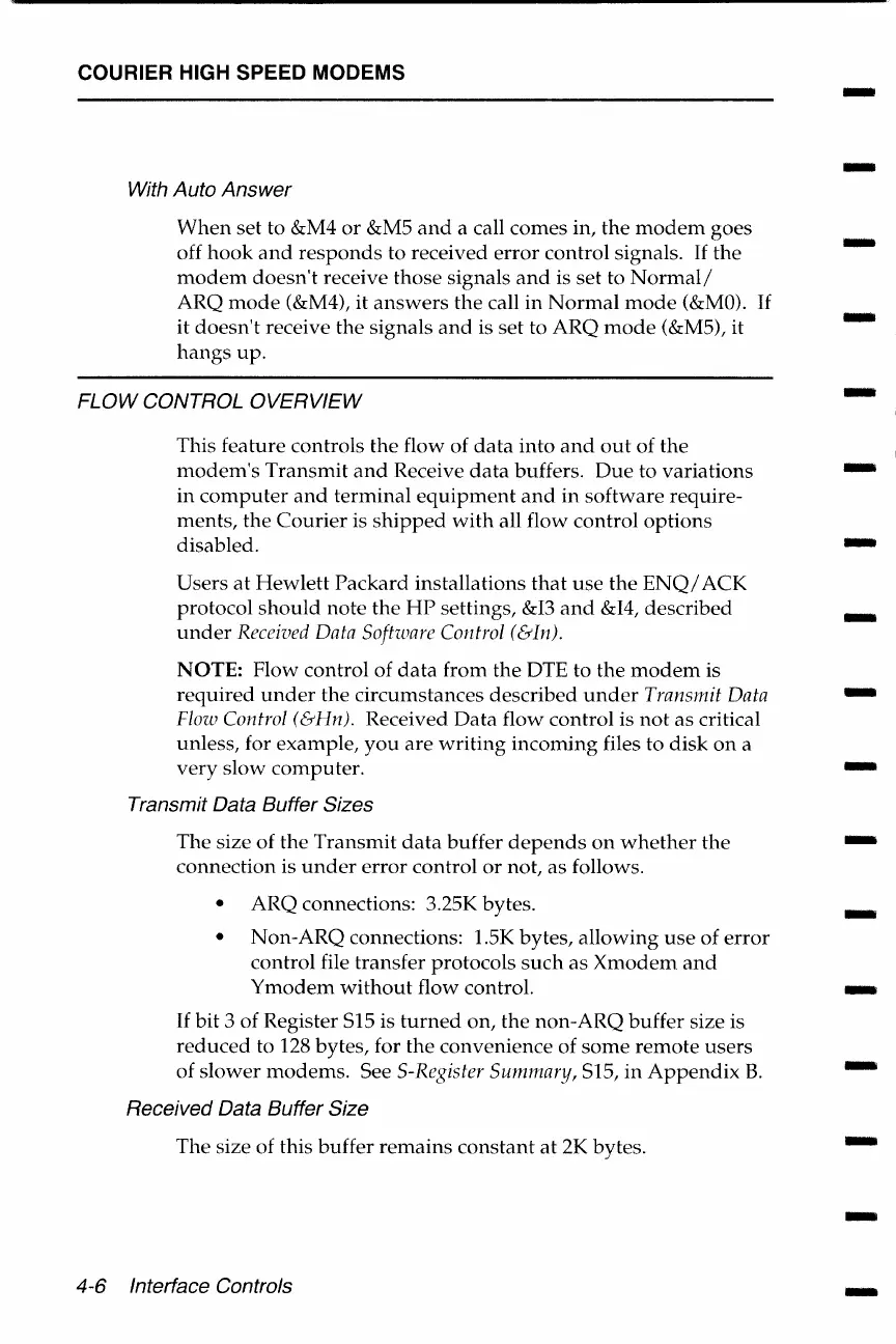 US Robotics COURIER - With Auto Answer; Flow Control Overview; Received Data Buffer Size; Transmit Data Buffer Sizes