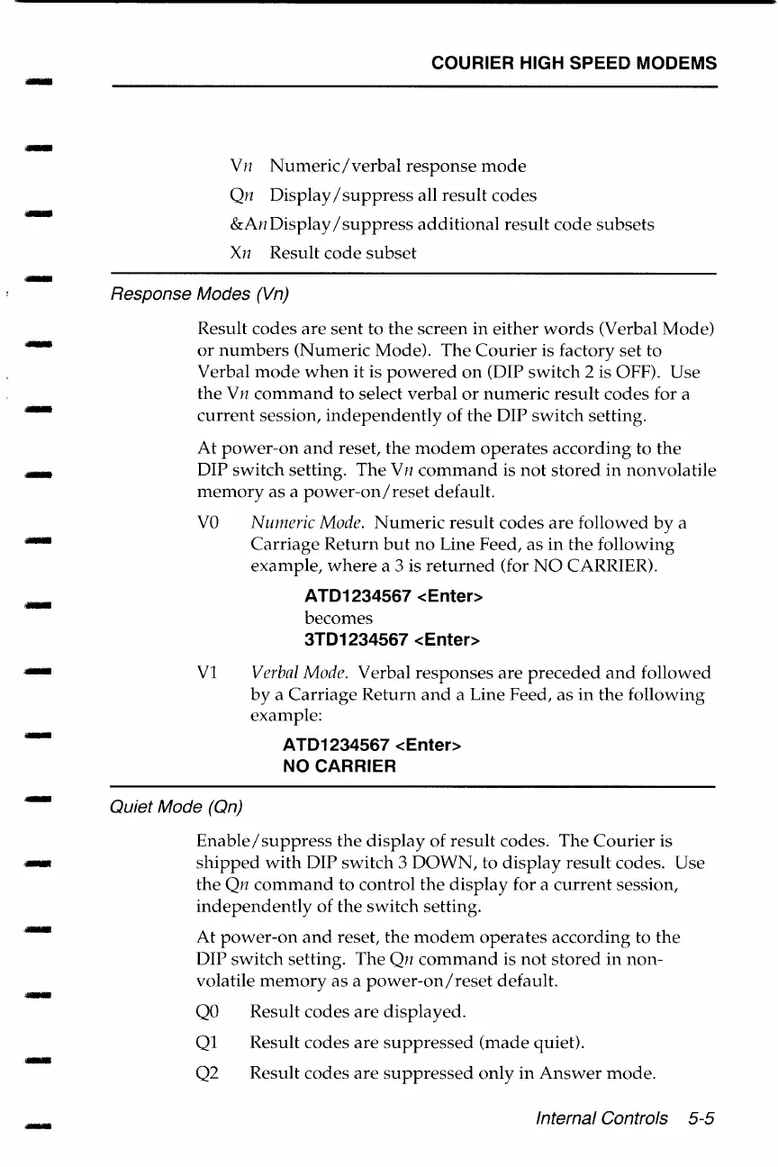 US Robotics COURIER - Response Modes (Vn); Quiet Mode (Qn)
