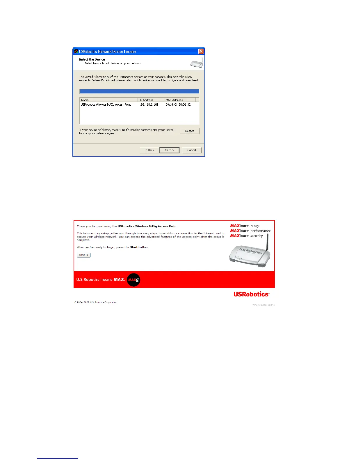 Der Locator startet den Setup-Assistenten für den Access Point.