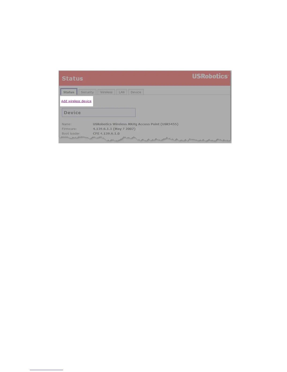 4. En la página Status (Estado), haga clic en el enlace “Add wireless device”