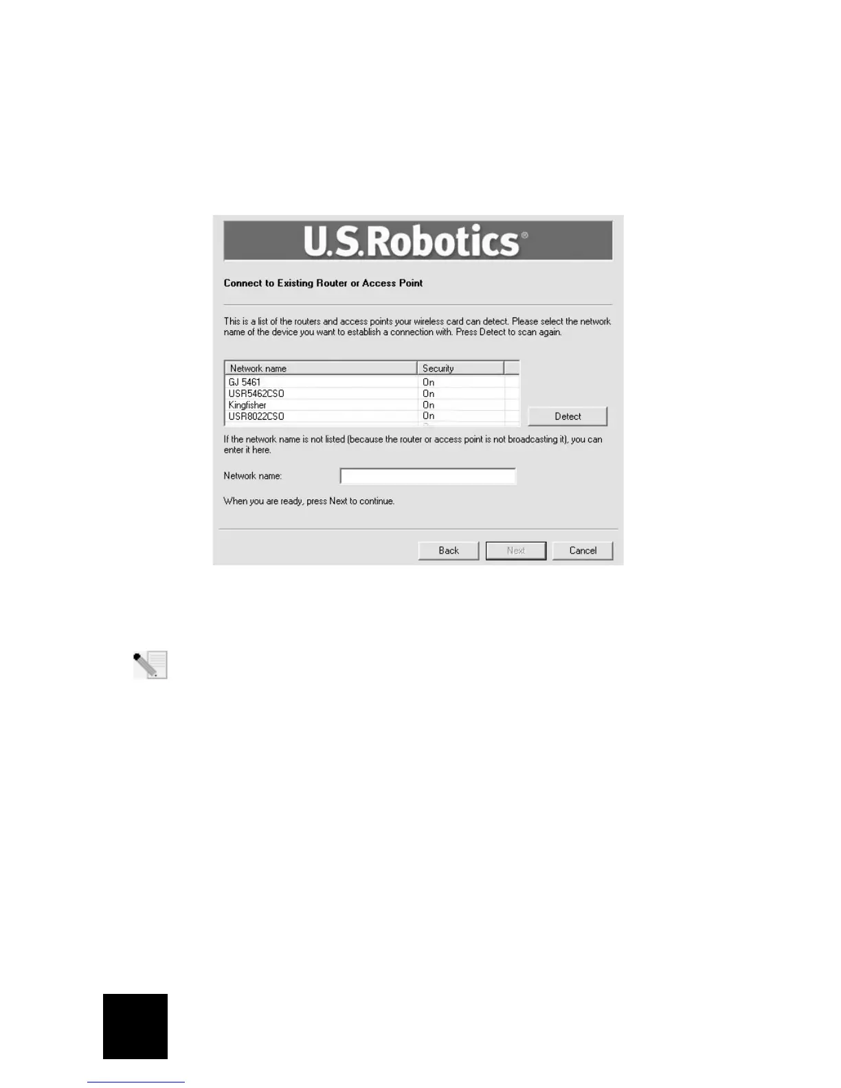 name is disabled in your wireless router or access point. You can also click Detect and
