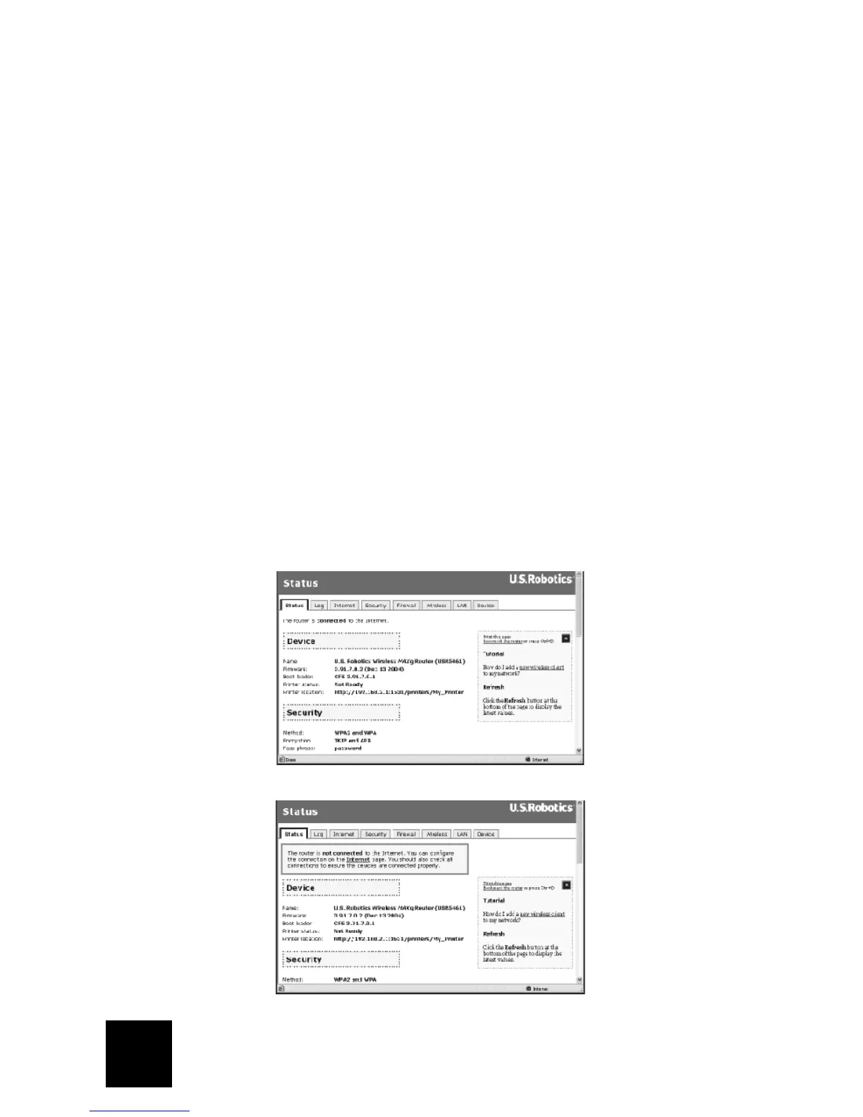 Le système doit normalement indiquer en haut de la page si le routeur est connecté à Internet.