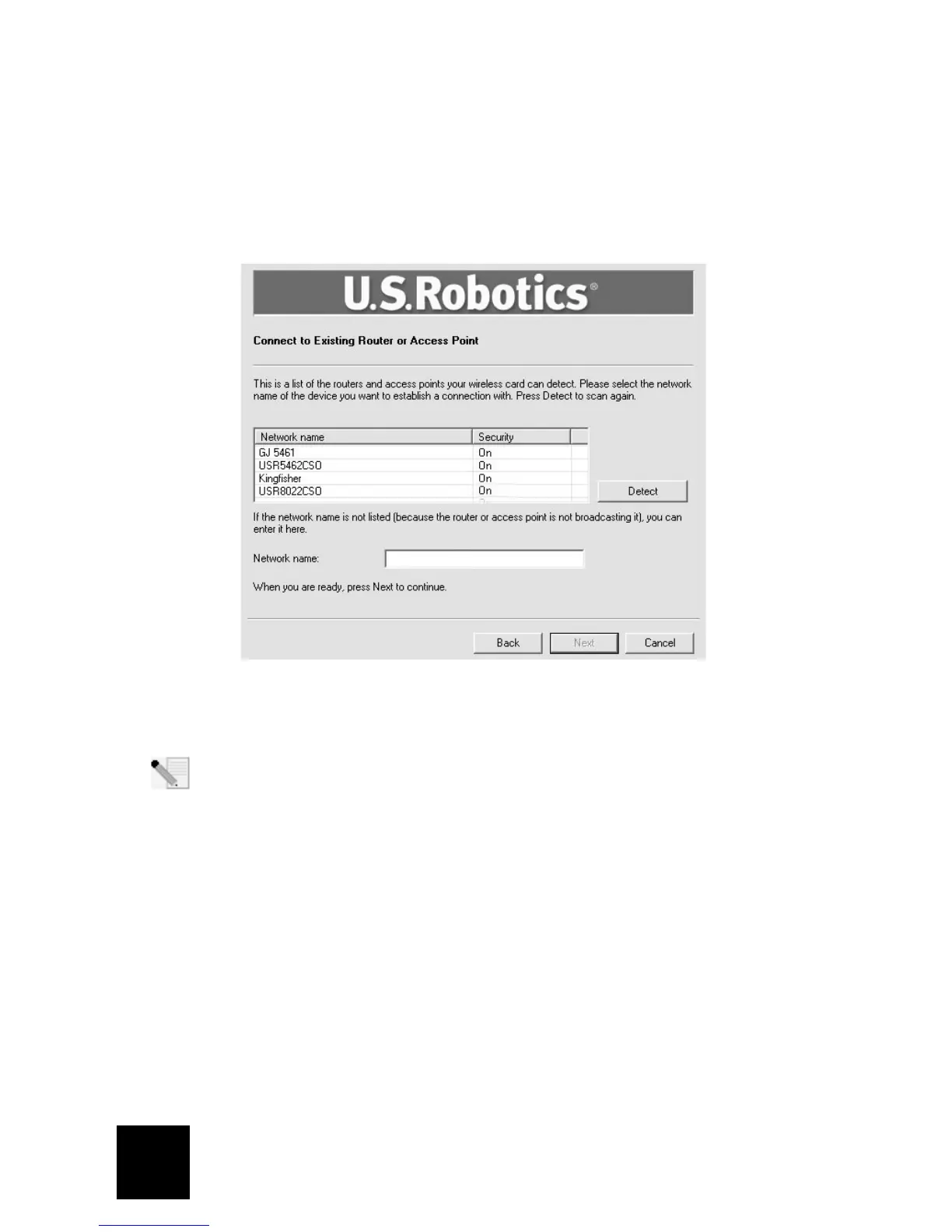 nel router o nell'access point wireless. È inoltre possibile fare clic su Detect (Rileva) per