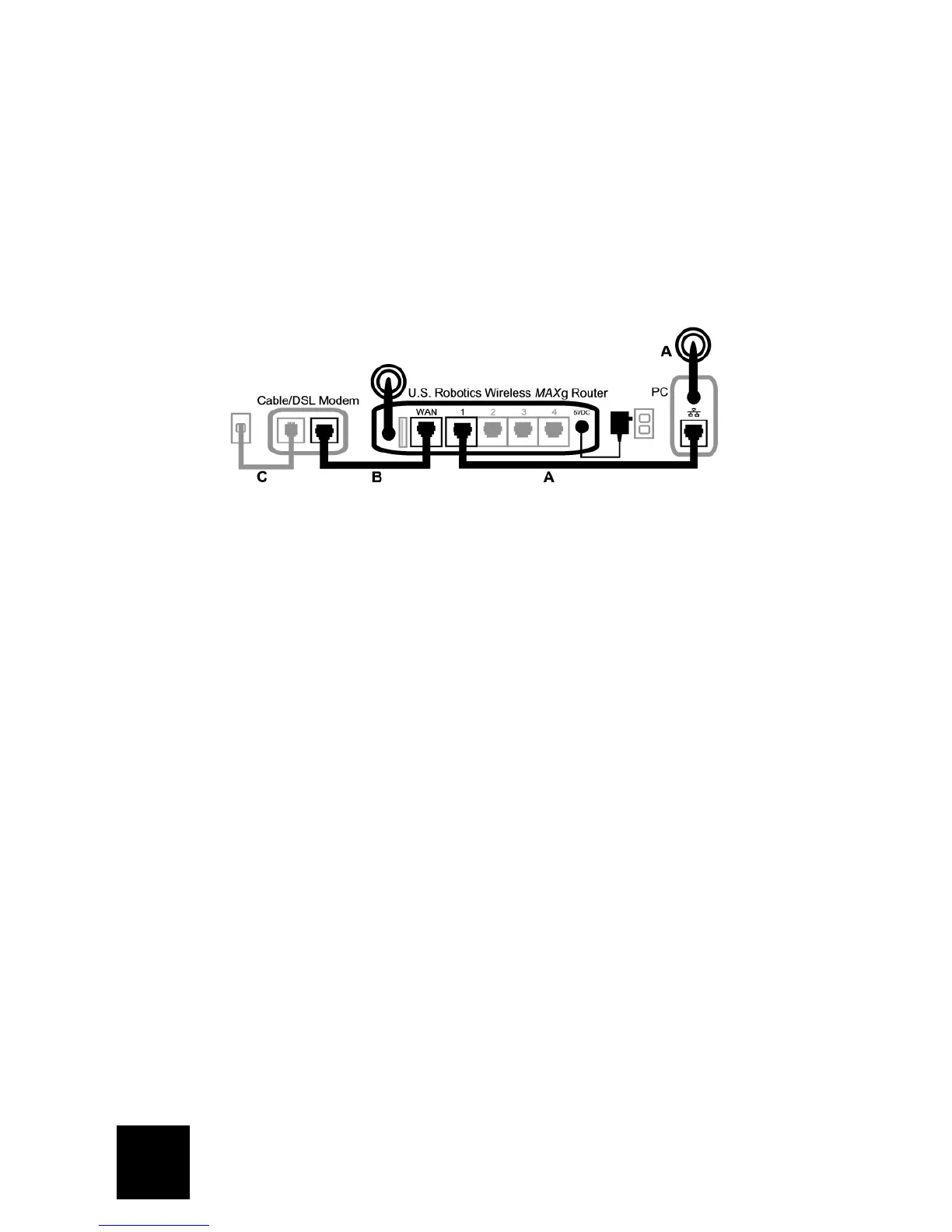 Als u een kabelverbinding gebruikt tussen de computer en de draadloze Wireless MAXg Router,