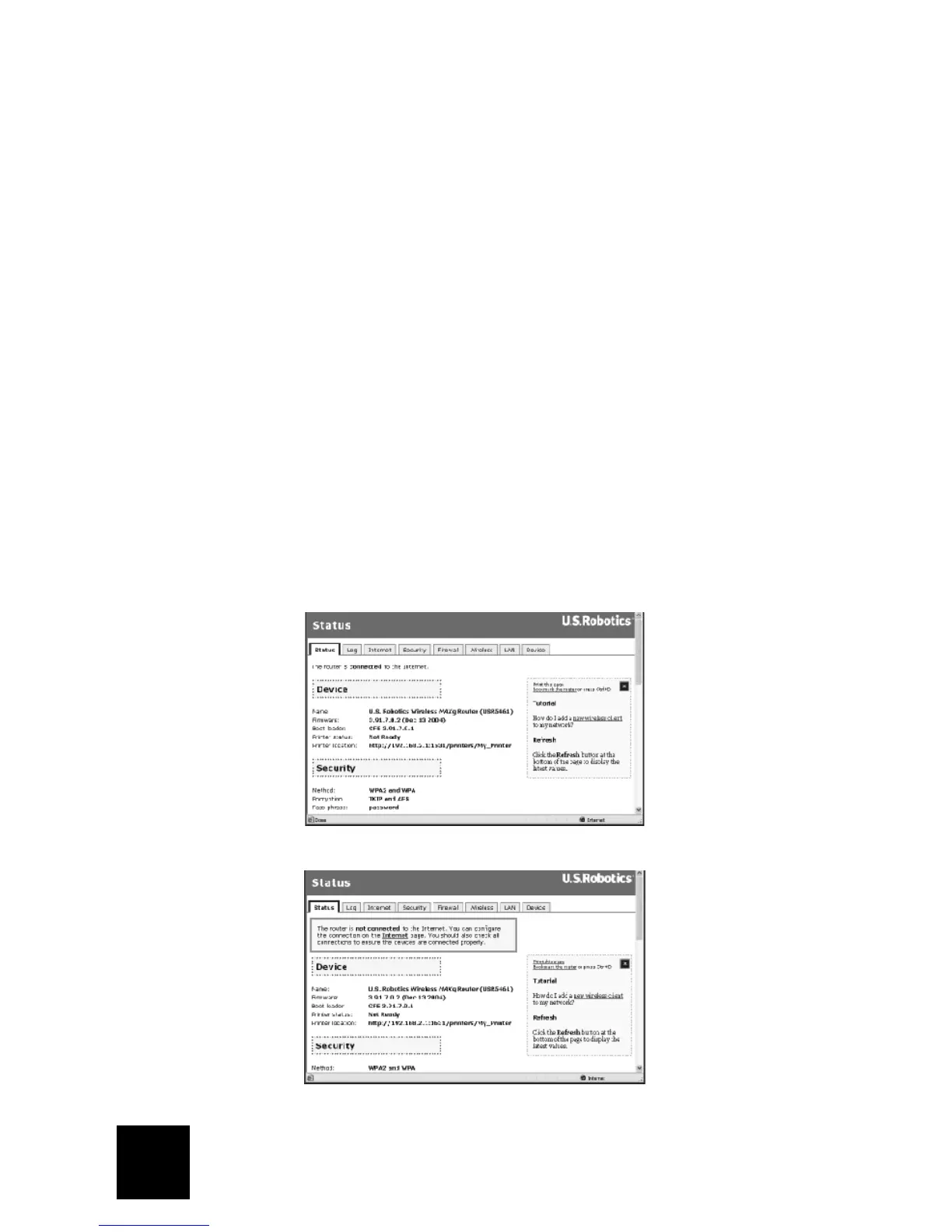 Bovenaan de pagina moet worden aangegeven of de router is verbonden met internet.