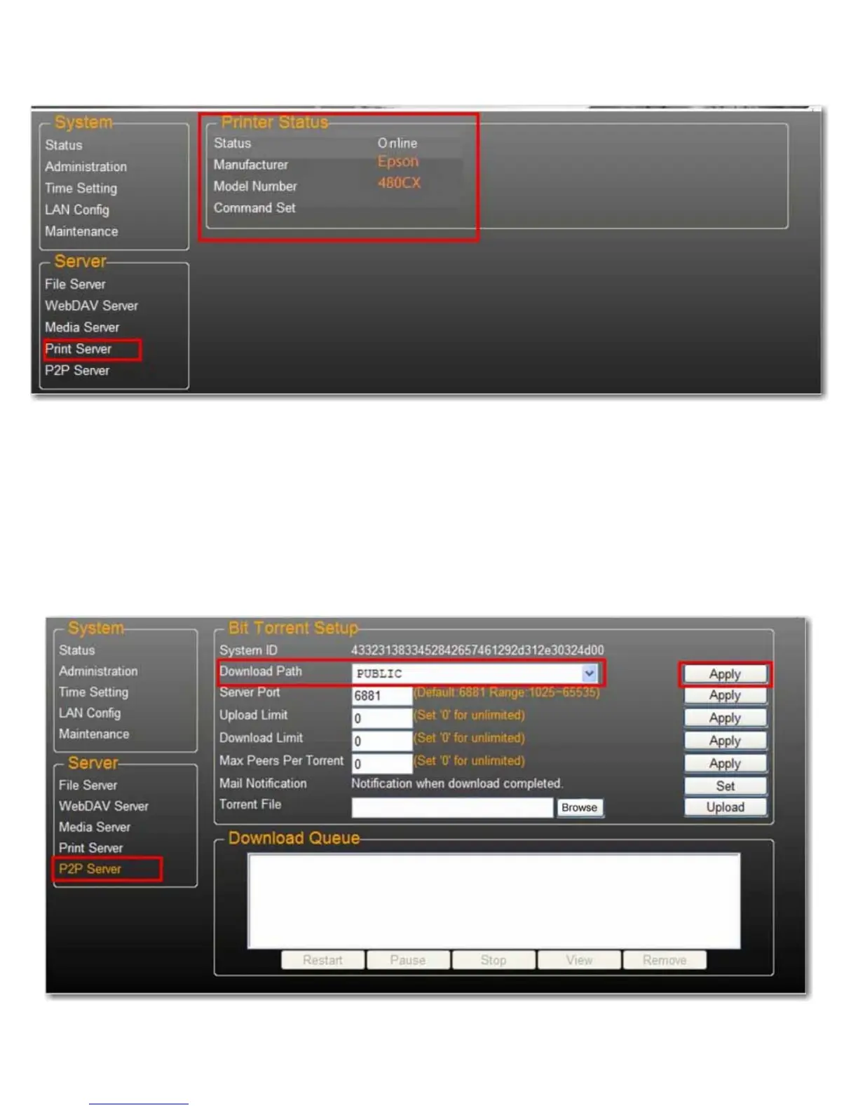 1. Öffnen Sie die Seite P2P Server. Wählen Sie im Feld Download Path den Downloadpfad aus, den Sie verwenden