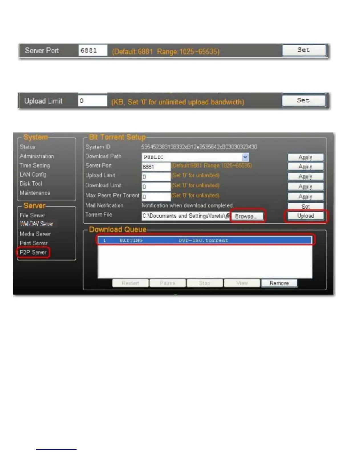 3. Legen Sie ein Upload Speed Limit (Upload-Geschwindigkeitsbegrenzung) fest: 0 = unbegrenzte Upload-