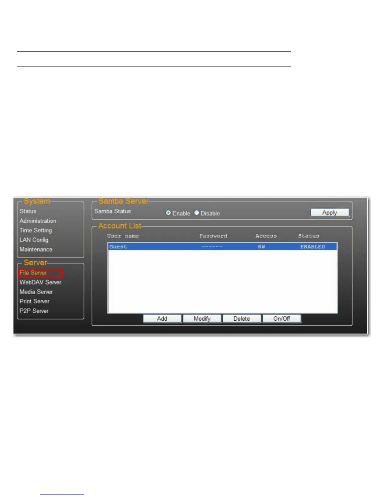 El servidor SMB permite compartir datos o archivos a través del entorno de LAN. Se crea una cuenta “Guest” (Invitado)