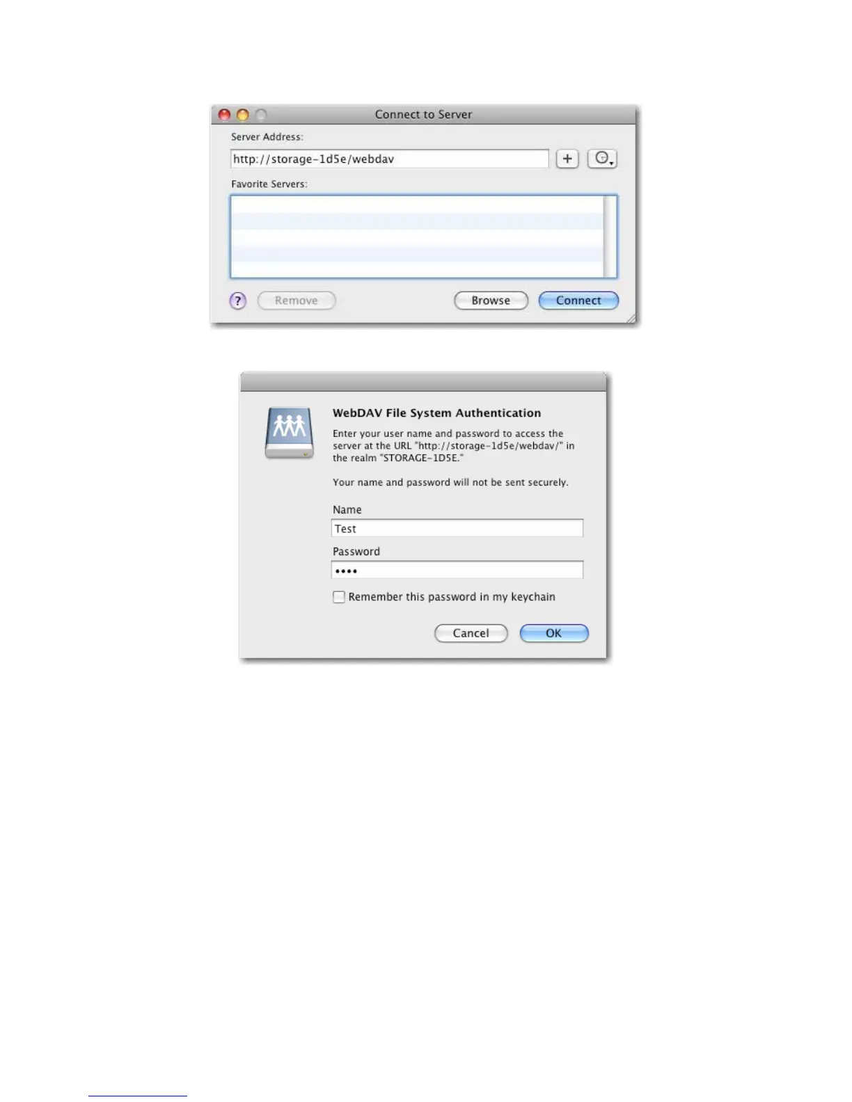 Ejemplo: introduzca http://storage-1d5e/webdav (nombre de host) o http://192.168.1.121/webdav