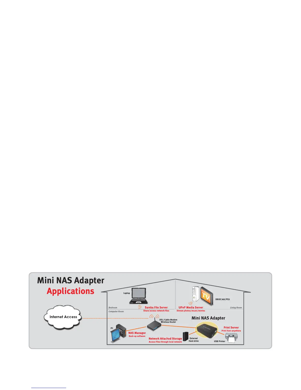 Con uShare™ Mini NAS Adapter è possibile trasformare un'unità di memorizzazione USB esterna in un dispositivo