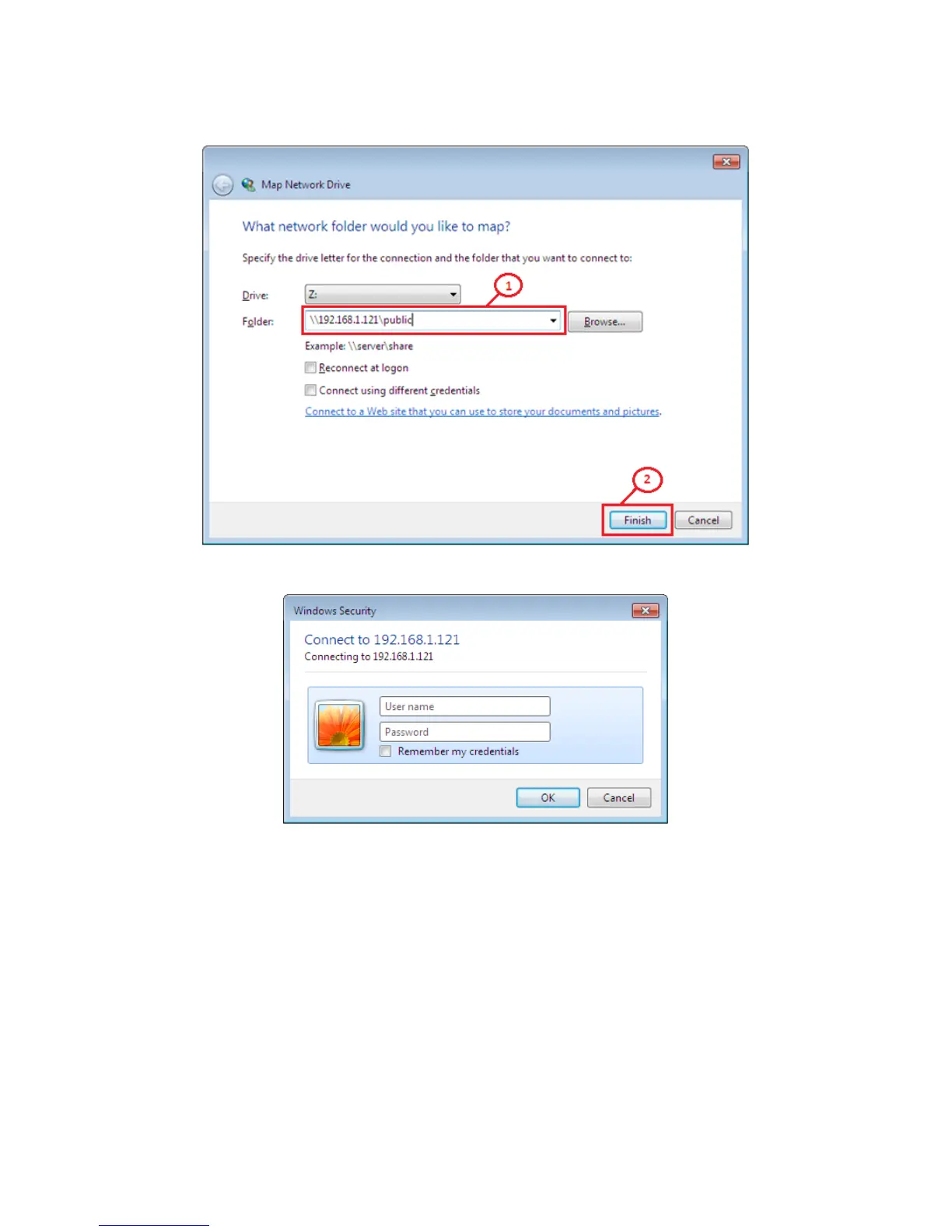 3. Inserire un nome utente e una password per accedere alla cartella condivisa e fare clic su OK.